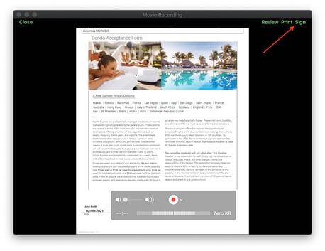 4. Tap the screen anywhere to select Sign: